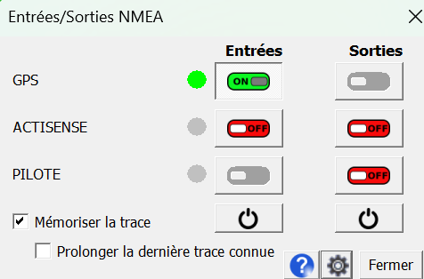 Dans les versions précédentes, 2 boutons indépendants étaient utilisés pour démarrer les entrées et sorties Nmea, sans pouvoir différencier les instruments. A partir de la version 25.0, un seul bouton